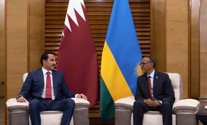 بحث حضرة سمو الشيخ تميم بن حمد آل ثاني أمير دولة قطر، وفخامة الرئيس بول كاغامي رئيس جمهورية رواندا، اليوم، العلاقات الثنائية بين البلدين وسبل تعزيزها وتطويرها في شتى المجالات.