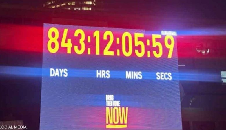 أوقفت إسرائيل، ساعة عد الزمن التي كانت تُظهر مدة احتجاز الرهائن الذين اقتيدوا إلى قطاع غزة خلال هجوم السابع من أكتوبر 2023، وذلك بعد 844 يوما على تشغيلها في ساحة وسط تل أبيب التي تحولت إلى رمز للاحتجاجات المطالِبة بإعادتهم.
