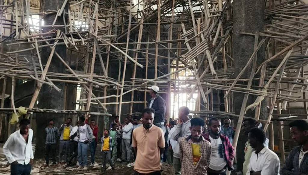 ووقع الحادث في ساعة مبكرة من صباح الأربعاء، بكنيسة “منجار شنكورا أريرتي مريم” في أمهرة، أثناء تجمع المصلين لحضور حفل سنوي. وكان العديد من المصلين قد صعدوا إلى السقالة الخشبية لمشاهدة لوحة جدارية على السقف، عندما انهارت السقالة فجأة، وفقا لشهود عيان.