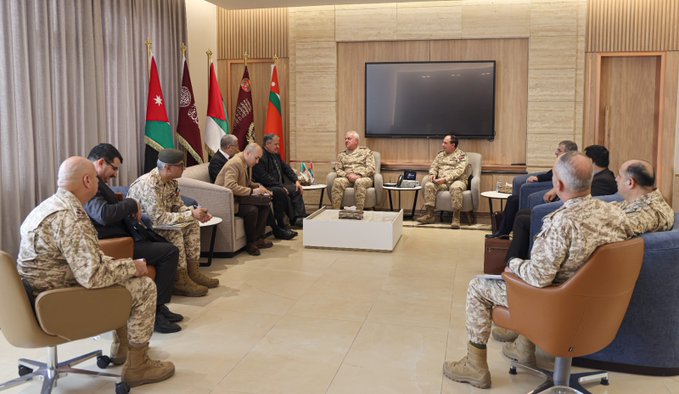 بحث اللواء الركن يوسف أحمد الحنيطي رئيس هيئة الأركان المشتركة الأردنية، اليوم، مع اللواء إسماعيل صديقي رئيس دائرة التنظيم والإمداد لأركان الجيش الجزائري، سبل تعزيز علاقات التعاون الثنائي بين القوات المسلحة.