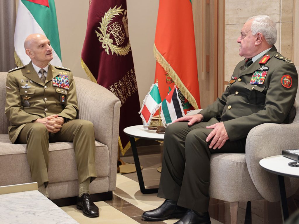 بحث اللواء الركن يوسف أحمد الحنيطي رئيس هيئة الأركان المشتركة الأردني، اليوم، مع الفريق أول لوتشيانو بورتولانو رئيس أركان القوات الإيطالية، أوجه التعاون العسكري والدفاعي بين البلدين.