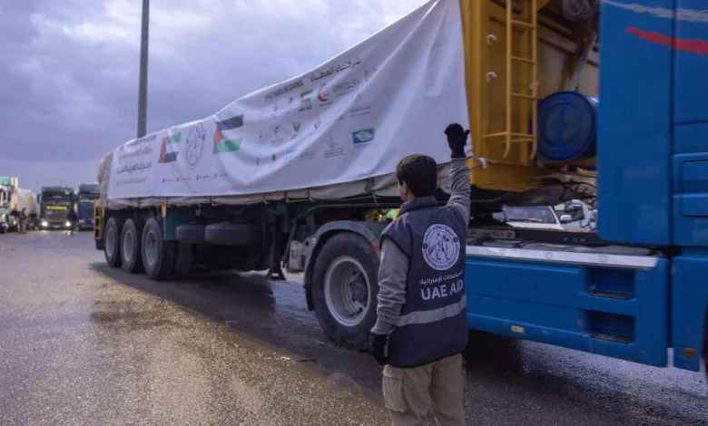 وشهد الأسبوع الماضي دخول قافلة المساعدات الإنسانية الإماراتية رقم 279، محمّلة بـ15 شاحنة تضم 291 منصة شحن، بإجمالي وزن بلغ 266 طناً من المساعدات المتنوعة، شملت طروداً غذائية، ومواد طبية، ومستلزمات طبية مستهلكة، إلى جانب أجهزة طبية.