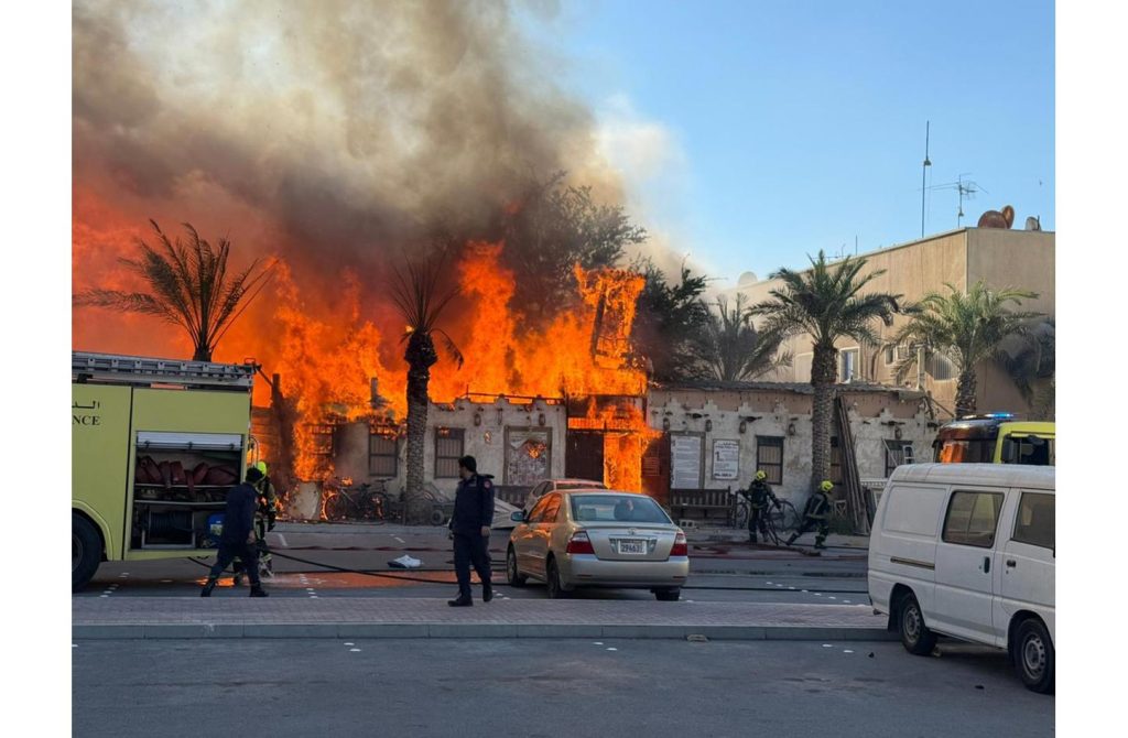 اندلع حريق في القرية التراثية المصغرة بمنطقة عراد في مملكة البحرين، دون تسجيل أي إصابات بشرية.