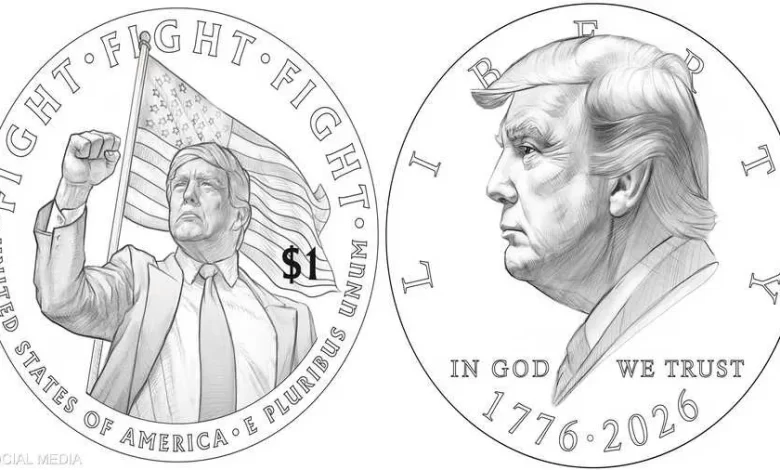 ويُظهر أحد التصاميم صورة لترامب على الوجه الأول للعملة النقدية، بينما يحمل الوجه الثاني صورة أخرى له رافعا قبضته أمام علم أميركي مع عبارة “حارب حارب حارب”.
