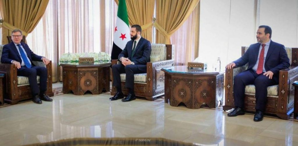 استقبل الرئيس السوري أحمد الشرع في العاصمة دمشق، بحضور وزير الخارجية والمغتربين أسعد حسن الشيباني، اليوم الخميس، وفداً رفيع المستوى من جمهورية ألمانيا الاتحادية برئاسة يوهان فاديفول الوزير الاتحادي للشؤون الخارجية.