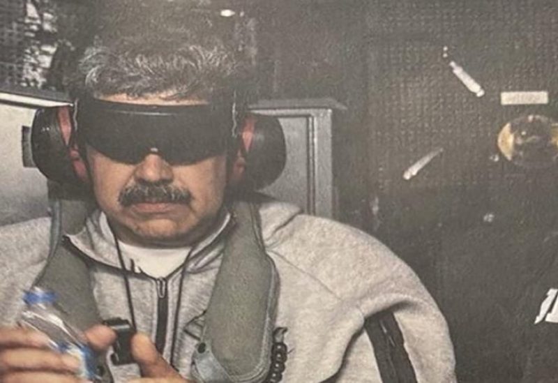 ثم نشر ترامب أول صورة لنيكولاس مادورو مكبّل اليدين ومعصوب العينين وعلى أذنيه سماعة واقية من الضوضاء.