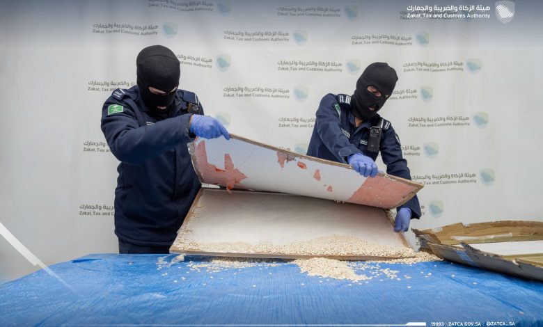 وأوضح المتحدث الرسمي باسم “زاتكا” حمود الحربي أنه وردت إرسالية عبر مطار الملك عبد العزيز الدولي عبارة عن “طاولات طعام” وعند خضوعها للإجراءات الجمركية، والكشف عليها عبر التقنيات الأمنية، والوسائل الحية، عُثر على تلك الكمية من الحبوب مُخبأة في الإرسالية وذلك بإخفاء المضبوطات في تجويف الطاولة.