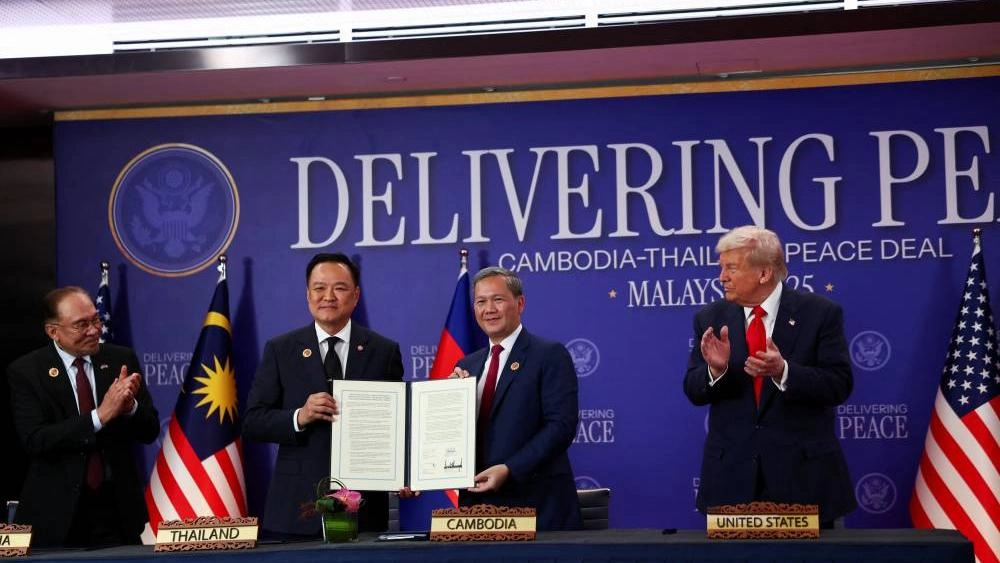 وقَّع زعيما تايلاند وكمبوديا اتفاقاً موسعاً لوقف إطلاق النار اليوم الأحد بحضور الرئيس الأمريكي دونالد ترامب، الذي توسط لإنهاء صراعهما الحدودي العنيف.