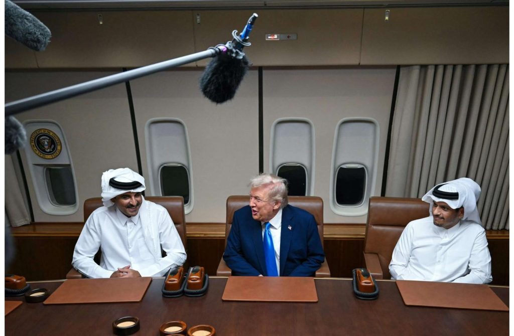 التقى الرئيس الأميركي دونالد ترامب بأمير قطر الشيخ تميم بن حمد آل ثاني، ورئيس الوزراء القطري، الشيخ محمد بن عبد الرحمن آل ثاني، على متن طائرته الرئاسية.