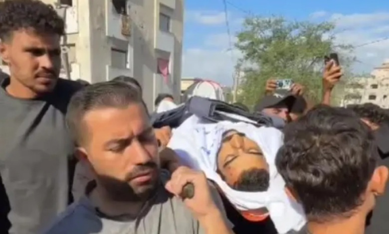 شيع فلسطينيون الصحفي صالح الجعفراوي إلى مثواه الأخير، والذي استشهد أمس الأحد، برصاص عصابات الاحتلال الإسرائيلي في مدينة غزة.