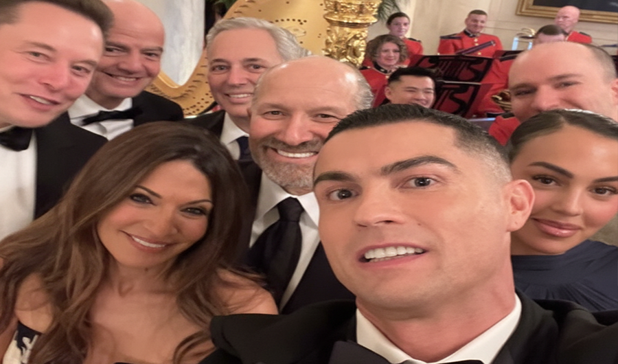 في عشاء رسمي أقامه الرئيس الأميركي دونالد ترامب في الغرفة الشرقية بالبيت الأبيض مساء أمس الثلاثاء، تكريماً لولي العهد السعودي الأمير محمد بن سلمان، في أول زيارة رسمية له إلى واشنطن منذ 7 سنوات، التُقطت صورة سيلفي من قبل نجم كرة القدم البرتغالي ولاعب النصر السعودي كريستيانو رونالدو، جمعت عدداً من أبرز رموز المال والأعمال والرياضة والسياسة في إطار واحد.