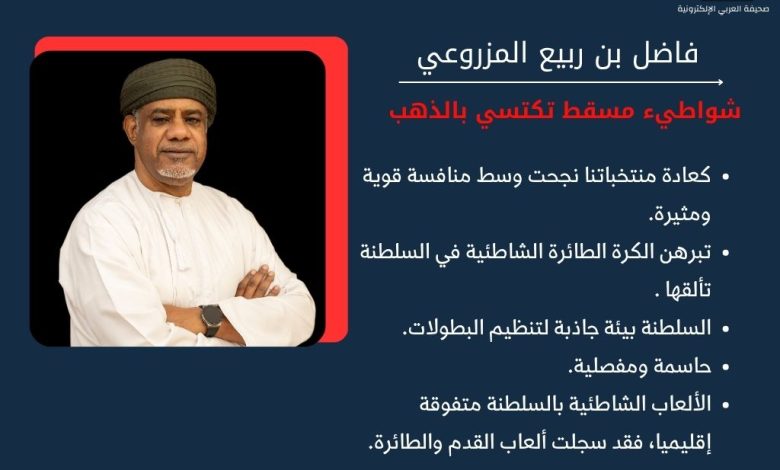 ختاما..الألعاب الشاطئية بالسلطنة متفوقة إقليميا، فقد سجلت ألعاب القدم والطائرة نتائجا لافتة على مستويات المنطقة والقارة والتأهل مرارا إلى بطولات العالم ، فحري بنا أن ندعم هذه الرياضات،لأنها إن وجدته ،حتما يوما ستحقق ميدالية عالمية .
