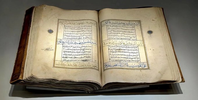 عرض مصحف شريف مزخرف من القرن الثالث عشر الهجري في متحف القرآن الكريم بمكة المكرمة
