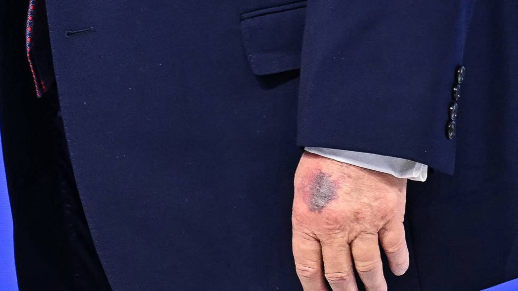 وبدت الكدمة متمركزة في منتصف ظهر الكف الأيسر، مما أثار تلاؤلات بين الصحفيين ورواد مواقع التواصل الاجتماعي حول سببها، خاصة مع التركيز المستمر على الحالة الصحية للرئيس.