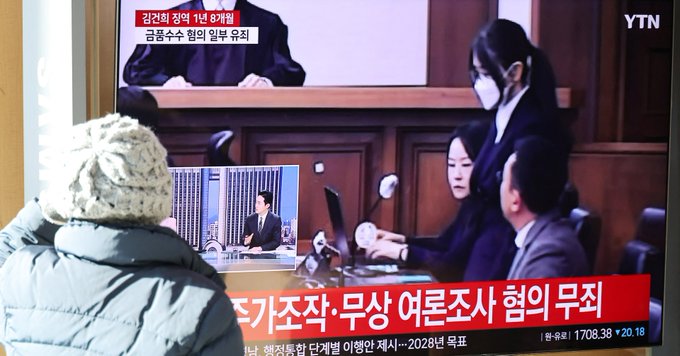 أصدرت محكمة كورية جنوبية حكماً اليوم الأربعاء، على السيدة ‍الأولى ‌السابقة كيم كيون هيه ⁠بالسجن لمدة ‍عام وثمانية أشهر بعد إدانتها بتلقي رشى من مسؤولين ‍من الحركة الدينية المعروفة باسم ‍كنيسة التوحيد مقابل تقديم خدمات سياسية