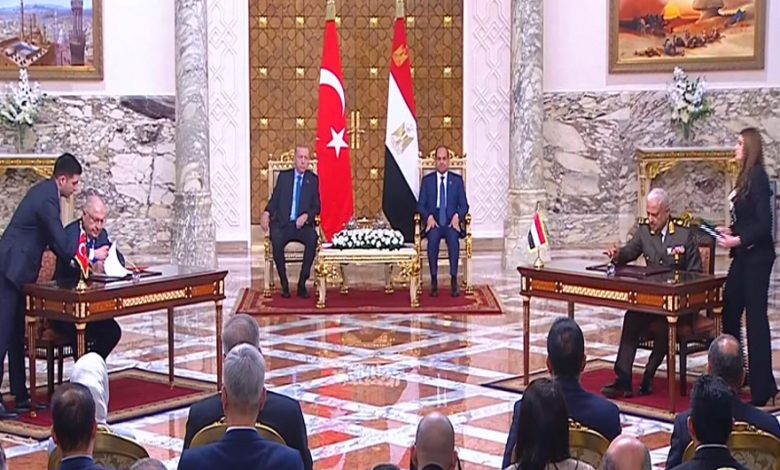 وحضر السيسي وأردوغان، توقيع عدد من اتفاقيات التعاون بين البلدين عقب اجتماع في العاصمة المصرية، وكان على رأس الاتفاقيات “اتفاقية عسكرية إطارية” بين حكومتي البلدين.وقع الاتفاقية من الجانب المصري وزير الدفاع الفريق أول عبد المجيد صقر، وعن الجانب التركي وزير الدفاع يشار غولر.