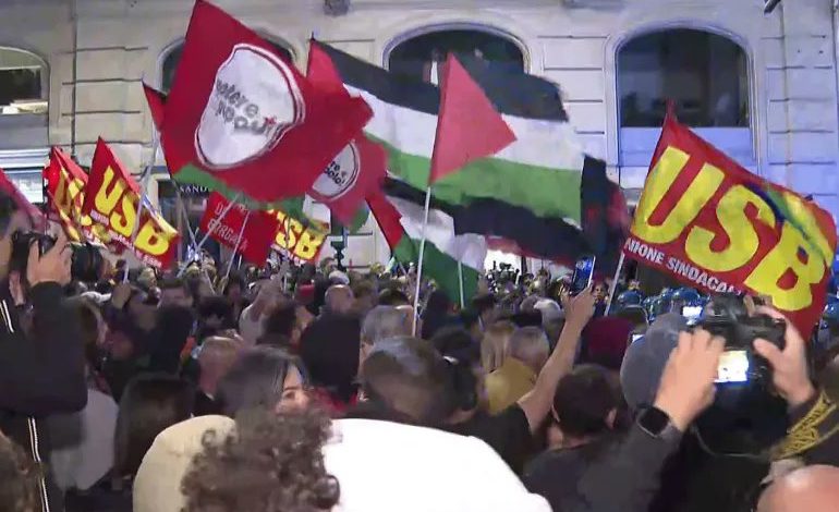 ومباشرة بعد الإعلان عن اعتراض قوات البحرية الإسرائيلية أسطول الصمود الذي يحمل مساعدات إنسانية لقطاع غزة انطلقت مظاهرة في العاصمة الإيطالية روما احتجاجا على عملية الاعتراض.