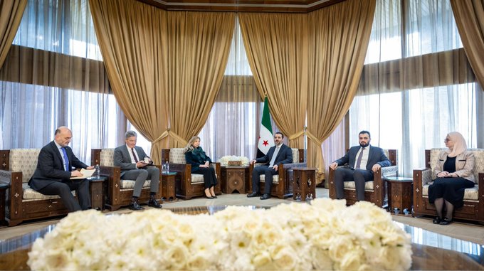 وأكد الوفد الأوروبي، برئاسة روزا ماريا غيلي مديرة مديرية الشرق الأوسط وشمال أفريقيا في دائرة العمل الخارجي الأوروبي، استمرار دعم الاتحاد الأوروبي لجهود الحكومة السورية، مع توقع رفع مستوى التمثيل الدبلوماسي لبعثته في دمشق قريبا، والعمل على إعادة تفعيل الاتفاقيات السابقة ورفع التجميد عن بعض بنودها تدريجيا.
