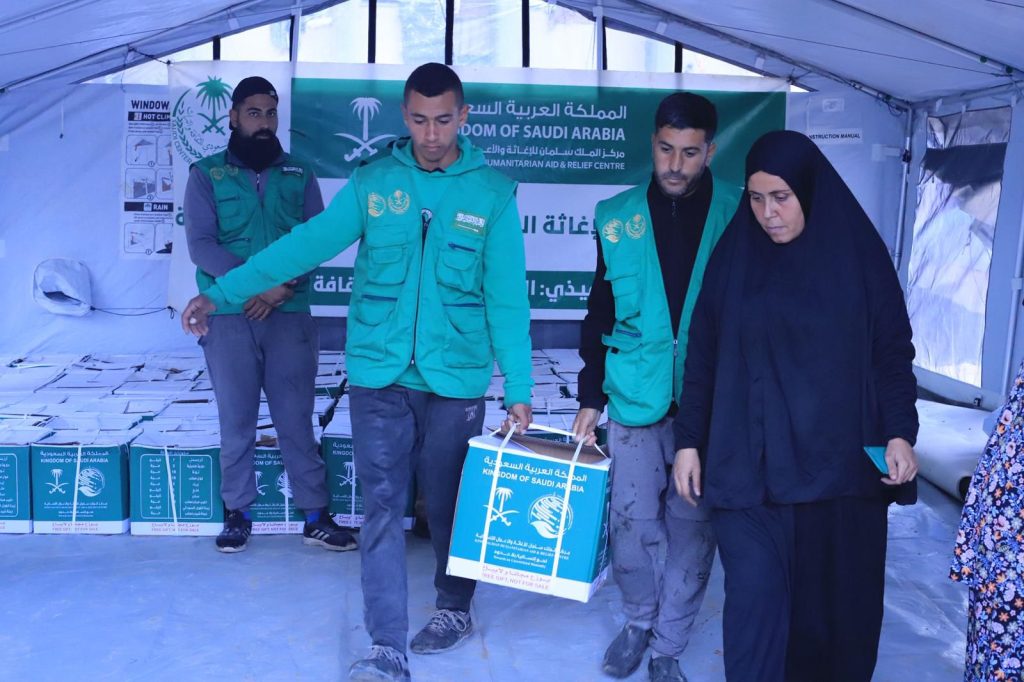 مركز الملك سلمان للإغاثة يوزع سلالًا غذائية على الأسر في مخيم جباليا المدمر شمال قطاع غزة
