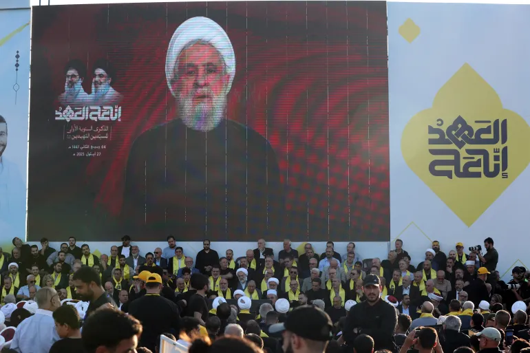 وأضاف قاسم -في كلمة بالضاحية الجنوبية لبيروت بمناسبة الذكرى السنوية الأولى لاغتيال الأمينيْن العاميْن السابقيْن لحزب الله حسن نصر الله وهاشم صفي الدين في حضور أمين المجلس الأعلى للأمن القومي الإيراني علي لاريجاني- أن الحزب لن يسمح بنزع السلاح، وسيخوض ما سماها “مواجهة كربلائية” لمنع تنفيذ ذلك.
